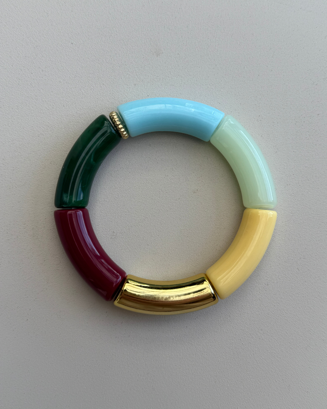 Färger: marmorgrön, ljusblå, ljusgrön, gul, guld, vinröd. Denna modell har också en liten räfflad guldpärla.