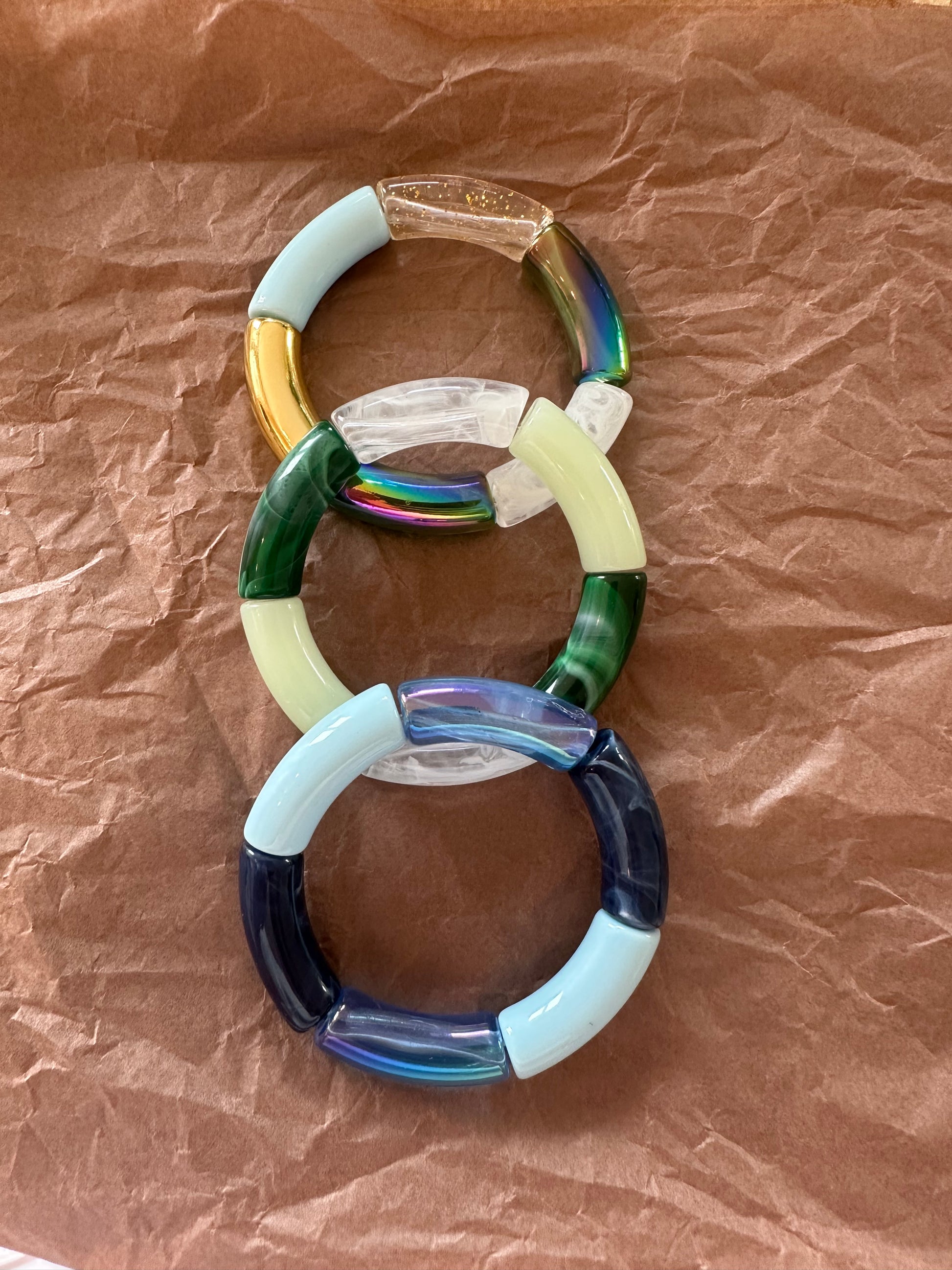 Tillverkning: Pärlorna är fabriksgjorda, men armbanden görs för hand i liten skala.