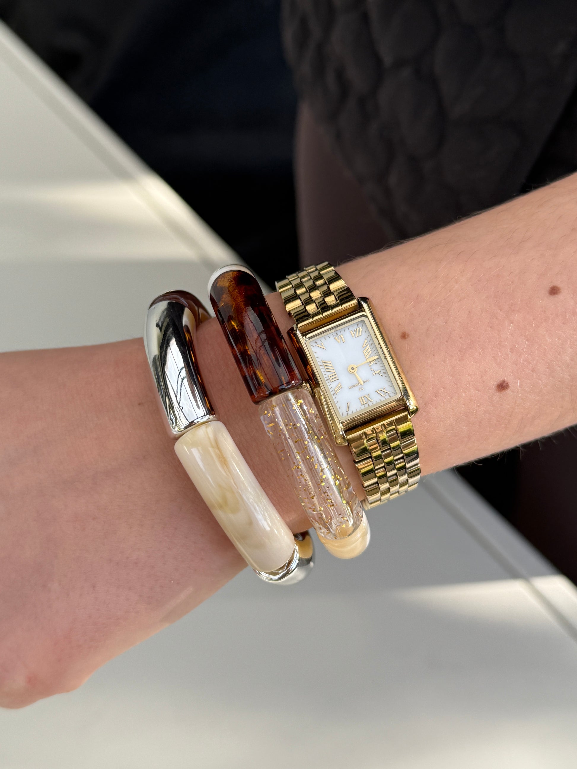 Färger: silver, beige marmorerad, bärnstensbrun